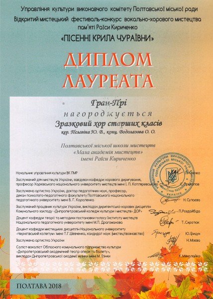 В квітні 2018 р хору було присвоєно почесне звання «Зразковий колектив». В жовтні 2018 р хор став володарем премії гран-прі на фестивалі-конкурсі «Пісенні крила Чураївни».