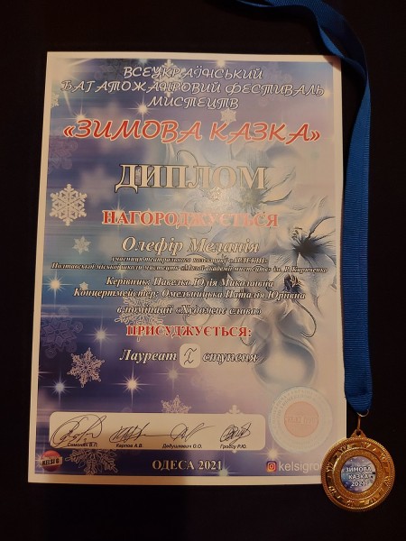 У місті Одеса відбувся Всеукраїнський Багатожанровий фестиваль мистецтв ,,ЗИМОВА КАЗКА,, де з великим задоволенням взяли участь театральний колектив ,, АРЛЕКІН ,, Полтавської міської школи мистецтв ,, Малої Академії мистецтв,, імені Раїси Кириченко (кер.Ю.Павелко, викл.Ю.Шустова, конц.Н.Омельницька).