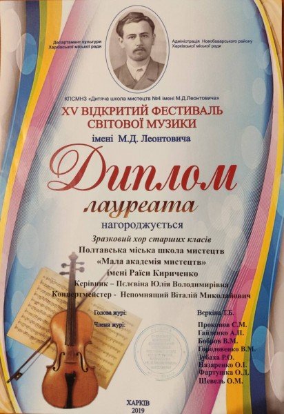 Зразковий хор старших класів представляв Полтавську міську школу мистецтв на цьому фестивалі.