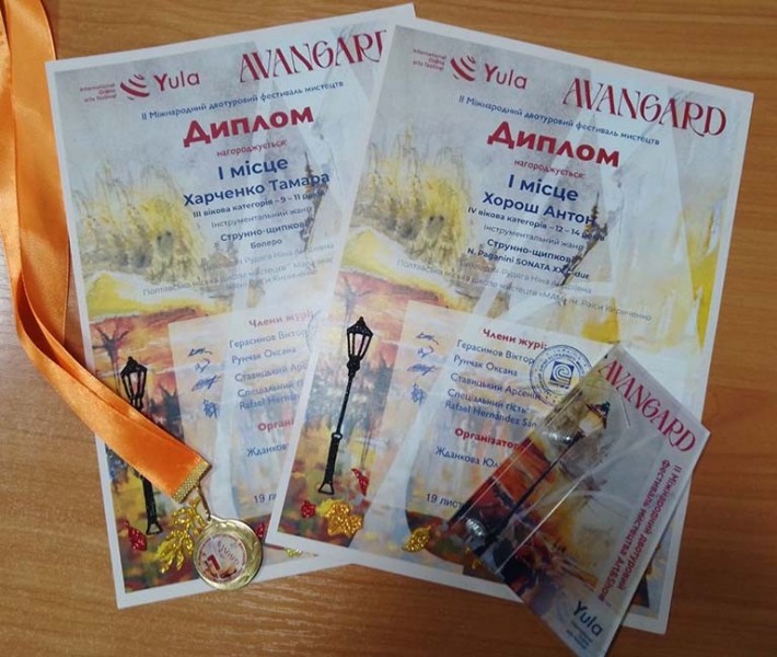В листопаді відбувся ІІ Міжнародний двотуровий фестиваль мистецтв «AVANGARD» Art&Show. За результатами двох турів учні Полтавської міської школи мистецтв «Мала академія мистецтв» ім. Р. Кириченко здобули перемогу в номінації «AVANGARD-Show» - інструментальний жанр.