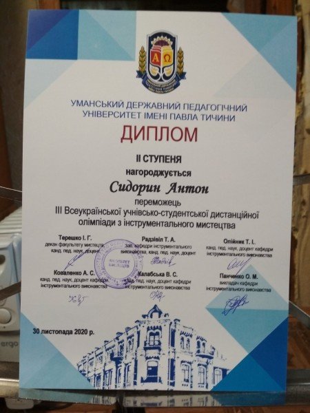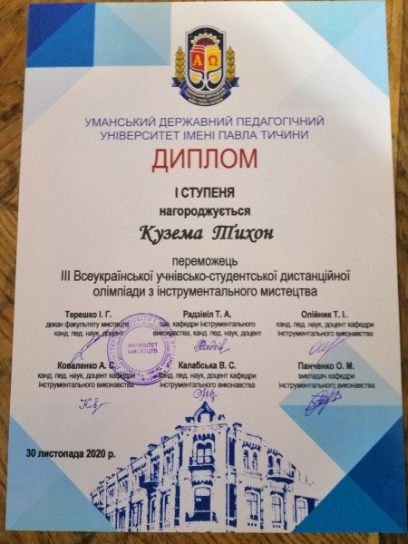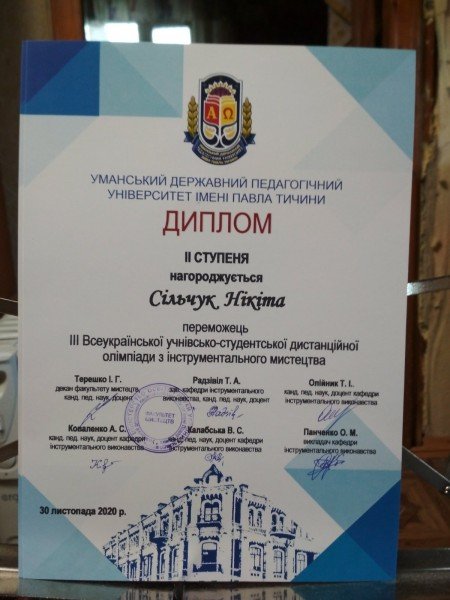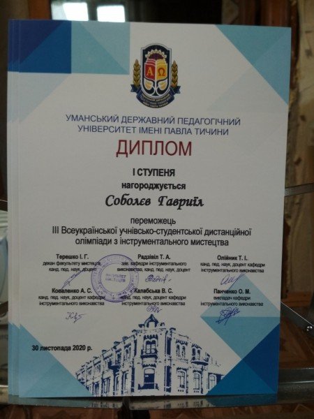 30 листопада 2020 року на базі Уманського державного педагогічного університету імені Павла Тичини відбулася III Всеукраїнська учнівська - студентська олімпіада з інструментального мистецтва.