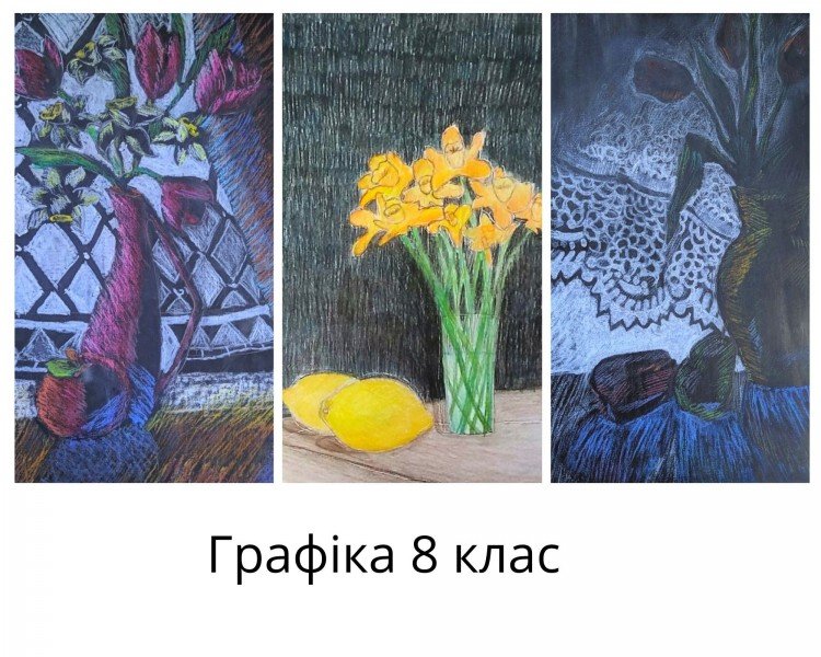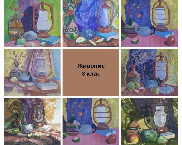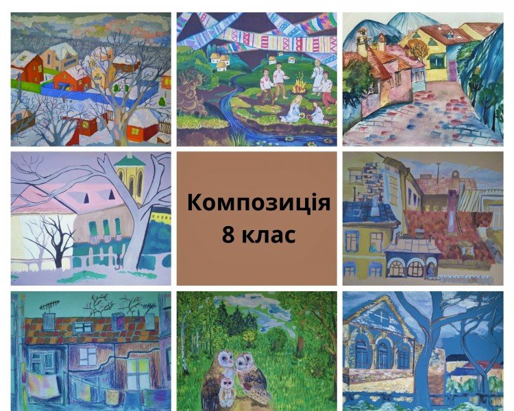 Колажи випускних робіт учнів 8 кл. образотворчого відділення (викладач Клочко Ольга В'ячеславівна)