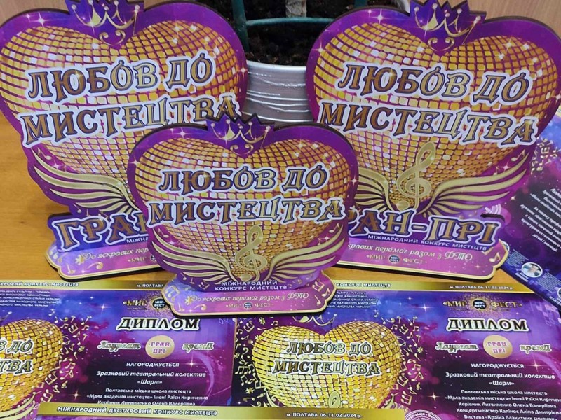У лютому цього року в місті Полтава відбувся Міжнародний двотуровий конкурс мистецтв під назвою "Любов до мистецтва". Участь у цьому заході взяв Зразковий театральний колектив "Шарм". Молодша група обдарованих акторів здійснила свій дебют і зачарувала всіх своїм виступом, отримавши Гран-прі та перше місце. Старша група також продемонструвала високий рівень майстерності і отримала Гран-прі.