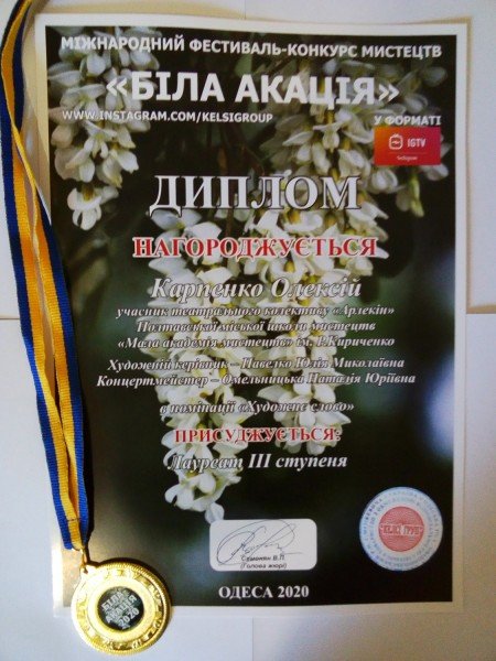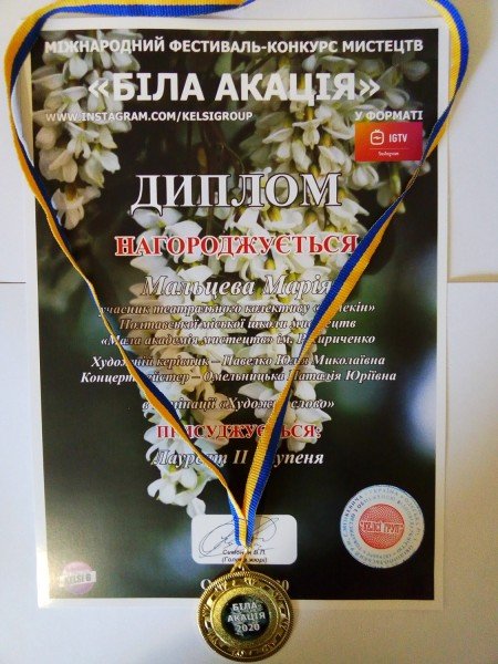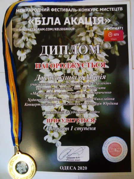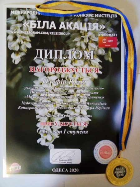 31 травня 2020 року у місті Одеса відбувся дистанційний Міжнародний фестиваль-конкурс мистецтв «БІЛА АКАЦІЯ».