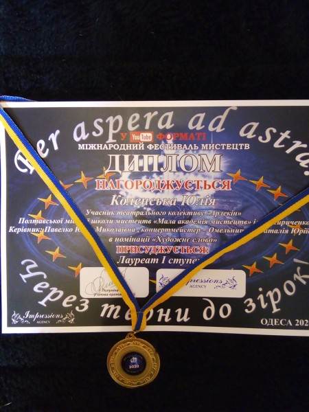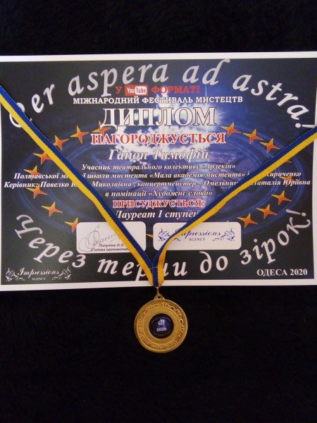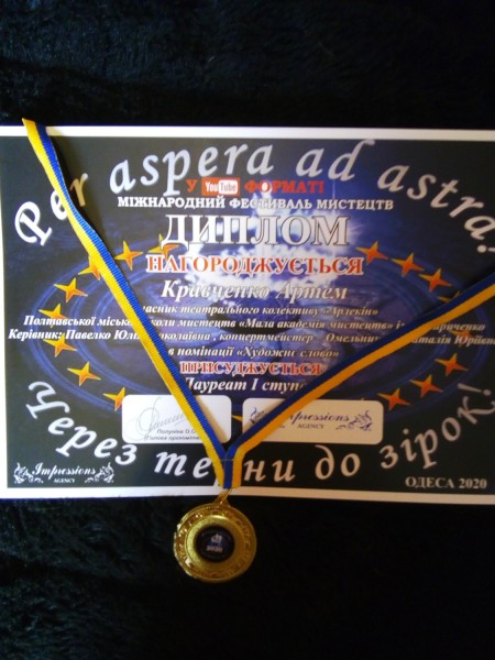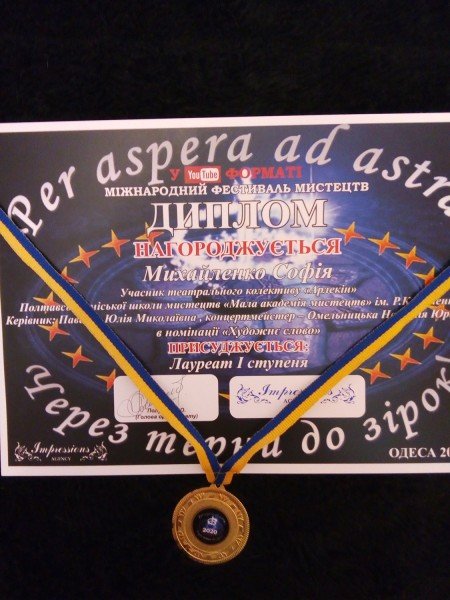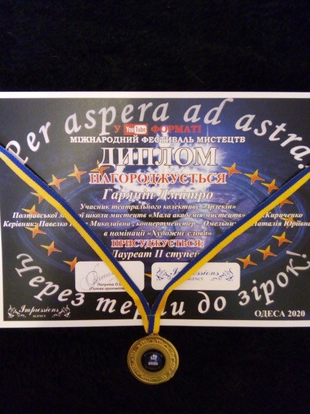 18 травня 2020 року пройшов дистанційний Міжнародний фестиваль мистецтв «Через терни до зірок» (м. Одеса).