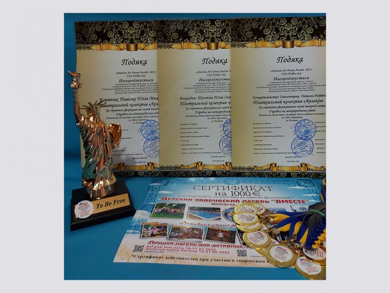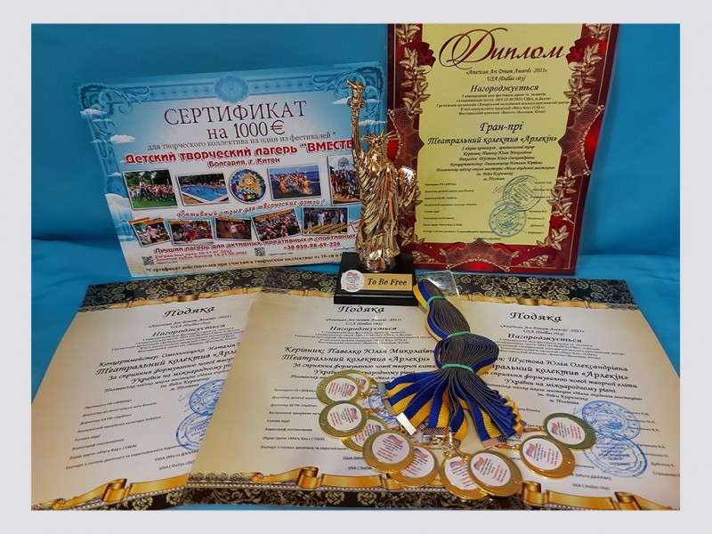 Напередодні Нового року відбувся I Міжнародний онлайн шоу-фестиваль краси та талантів "Американская Мечта - 2021"(США, м. Даллас). В цьому заході з великим задоволенням взяли участь учасники театрального колективу "АРЛЕКІН" Полтавської міської школи мистецтв "Мала академія мистецтв" ім. Р. Кириченко (кер. Ю. Павелко, викл. Ю. Шустова, конц. Н. Омельницька) у номінації "Оригінальний жанр" з номером "Новорічні візерунки" та стали ВОЛОДАРЯМИ ГРАН-ПРІ!!!