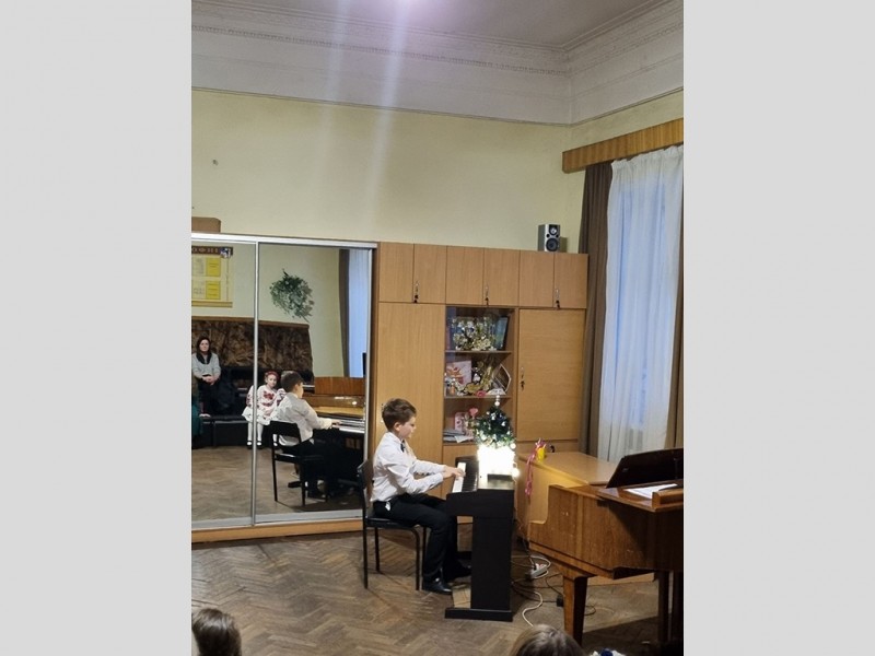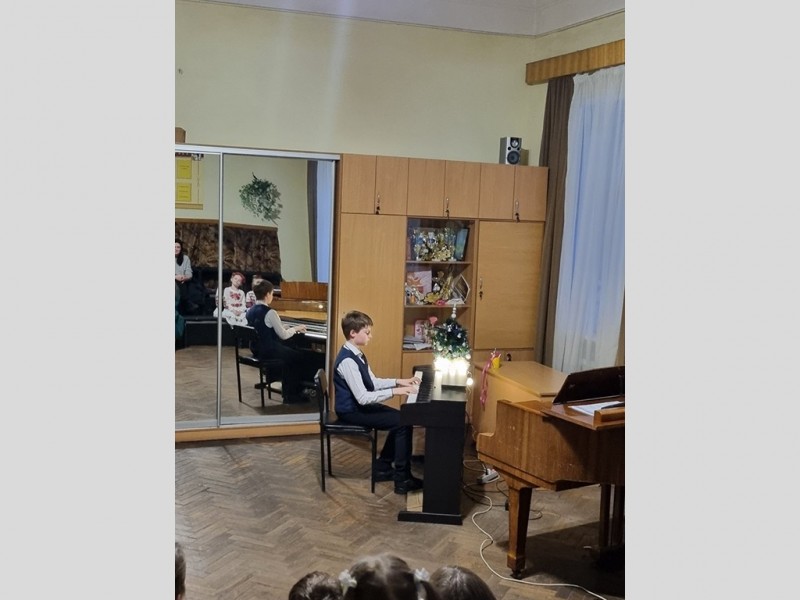 Напередодні Нового року учні фортепіанного вiддiлу влаштували в школі захоплюючий концерт. Батьки та друзі прийшли на святковий захід, приурочений Новому 2024 року. Юні виконавці підготували й виконали найкращі твори свого репертуару, демонструючи вміння та талант перед своїми батьками та викладачами. Прозвучали твори видатних українських композиторів, а також діти вражали присутніх читанням віршів.