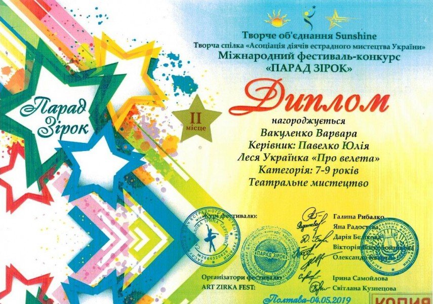 Вітаємо переможців Міжнародного фестивалю-конкурсу «Парад зірок» (04.05.2019 р. Полтавський міський Будинок культури)
