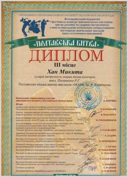 - Хан Микиту - Лауреат 3 ступеню (викл. Пилипенко Р.Г.)