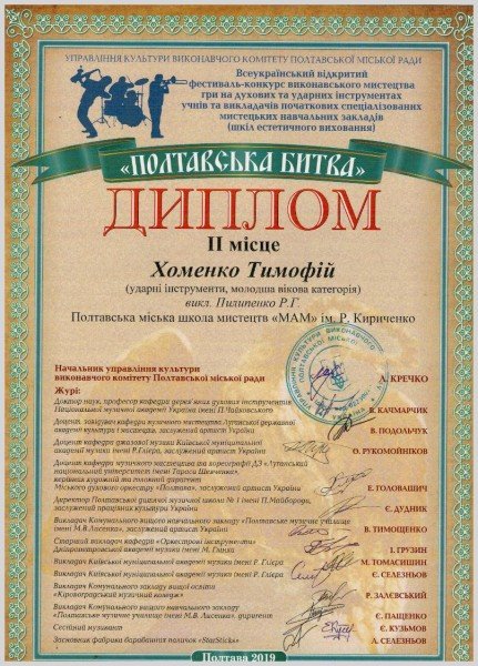 - Хоменко Тимофія - Лауреат 2 ступеню (викл. Пилипенко Р.Г.)