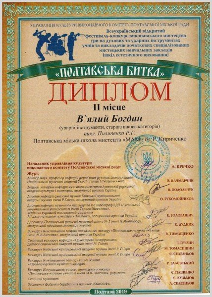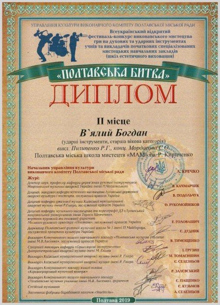 - В`ялого Богдана - Лауреат 2 ступеню (викл. Пилипенко Р.Г., конц. Мордасова С.О.)