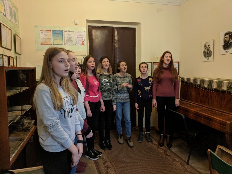 Учасниці зразкового вокального ансамблю «Перлинки» керівник Анастасія Ляпкіна привітали адміністрацію Полтавської міської школи мистецтв «Мала академія мистецтв» імені Раїси Кириченко