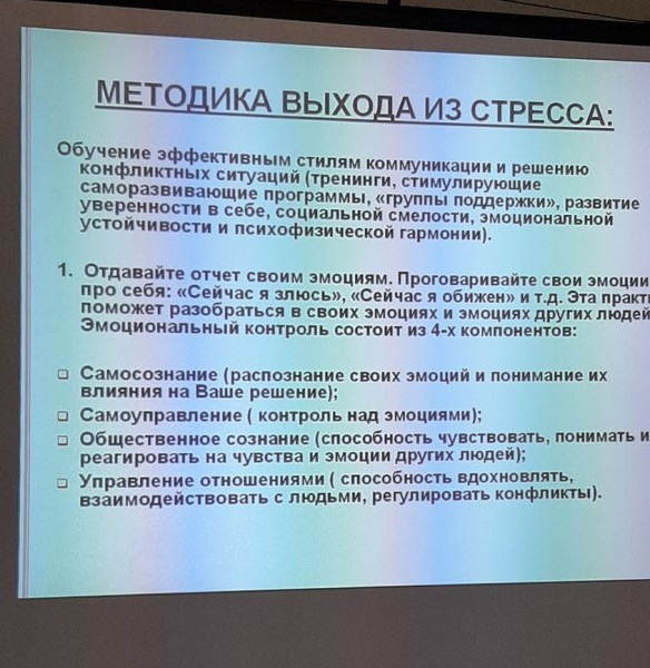 Під час лекції викладачі не тільки отримали знання як боротися зі стресом та його наслідками, а також отримали реальні рекомендації та вправи, за допомогою яких можливий вихід із скрутних обставин.