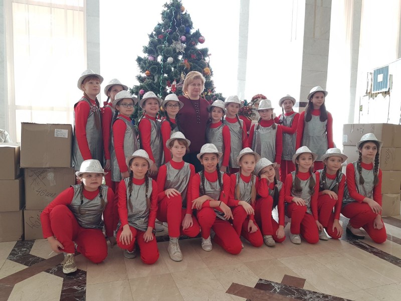 Зразковий вокальний колектив «Сюрприз» керівник Юлія Пєлєвіна заспівали під оркестр новорічну пісню.