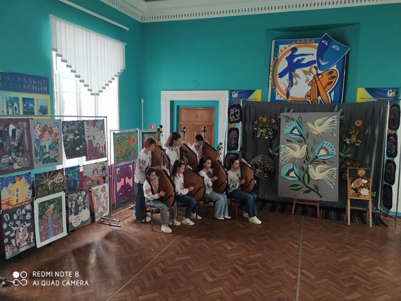 Церемонію нагородження доповнювала виставка творчих робіт дітей-учасників конкурсу “Наші традиції — наше коріння”, яку супроводжували музичні виступи учнів та викладачів народного відділу.