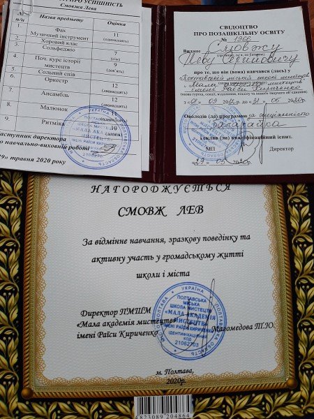 19 червня в Полтавський міській школі мистецтв «Мала академія мистецтв» імені Раїси Кириченко відбулося вручення свідоцтв випускникам 2019-2020 року навчання. На жаль в цьому році без концертних номерів, показових виставок, без присутності батьків та друзів. На жаль...