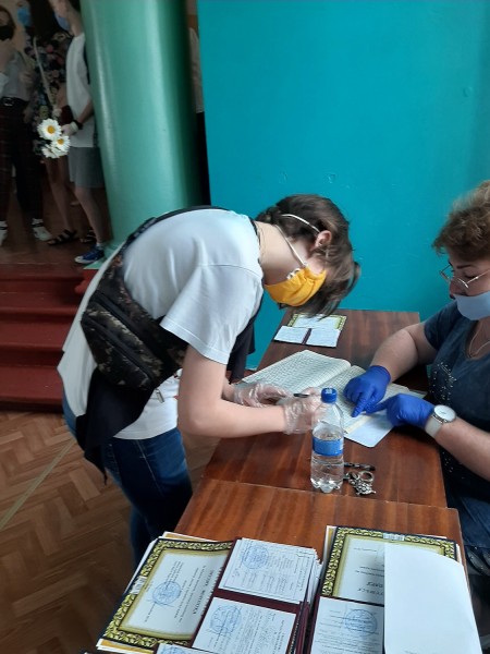З дотриманням всіх санітарних норм , та після температурного скринінга в приміщення школи заходили випускники. В фойє 2 поверху їх зустрічали викладачі.