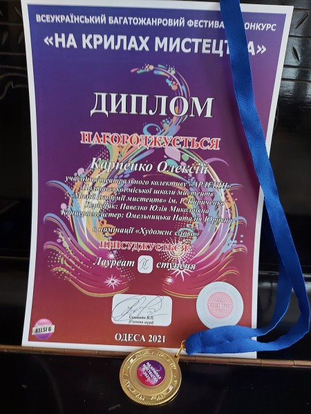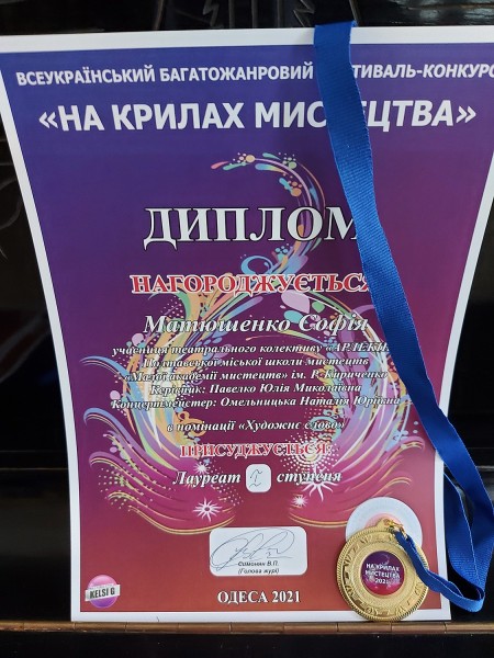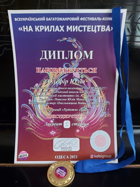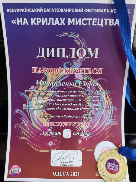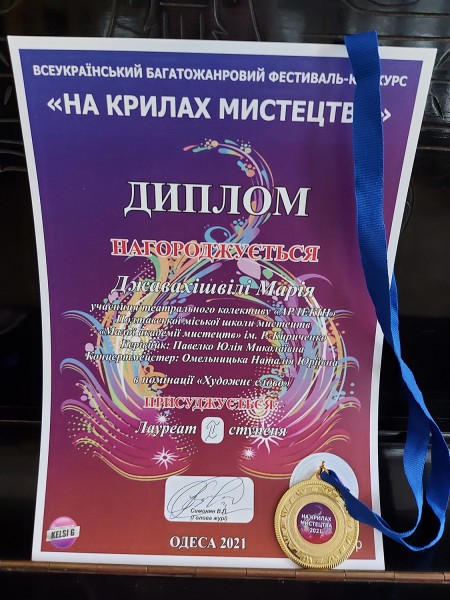 Нещодавно в квітні 2021 року у місті Одеса відбувся Всеукраїнський Багатожанровий фестиваль-конкурс "НА КРИЛАХ МИСТЕЦТВА", що проводився дистанційно.