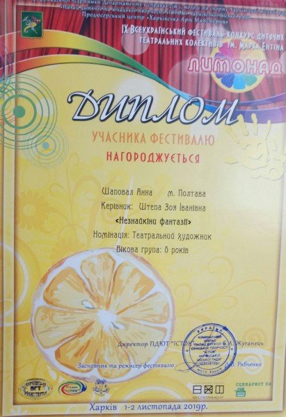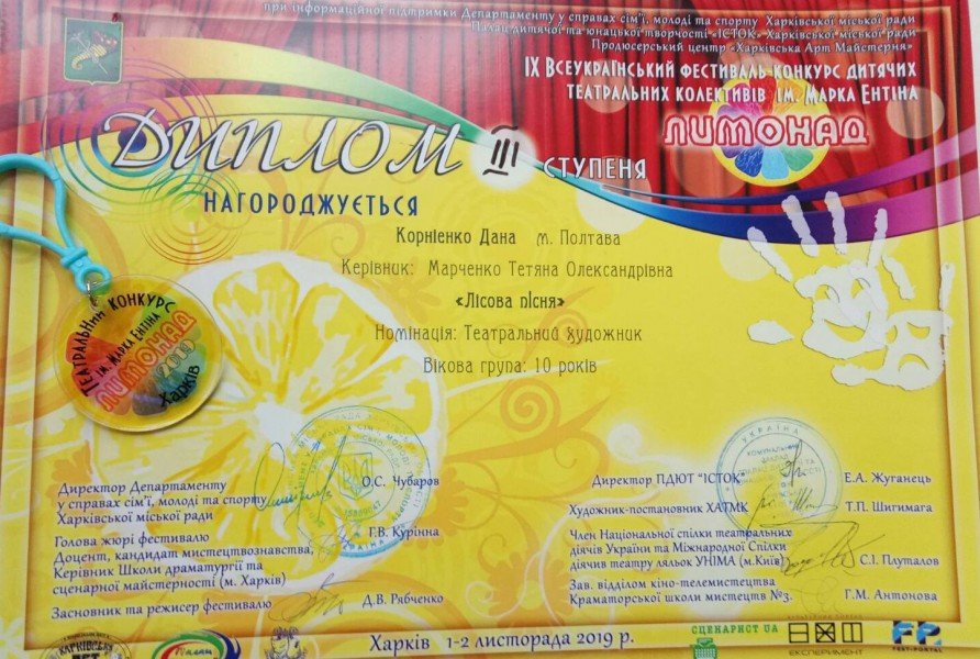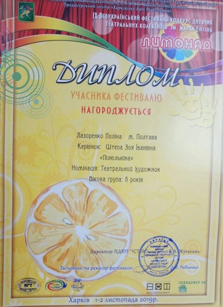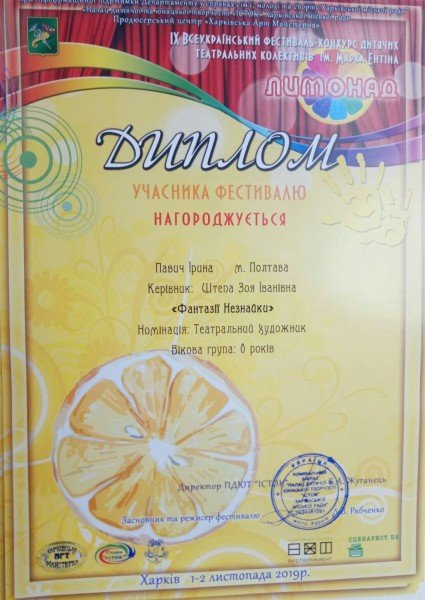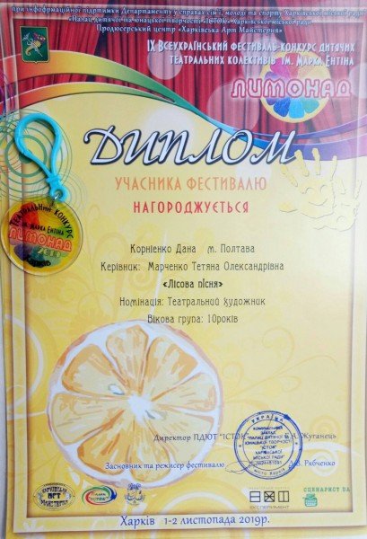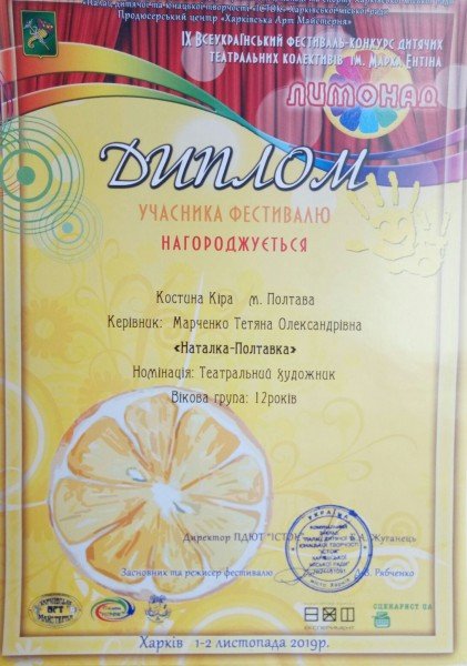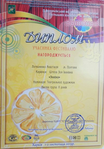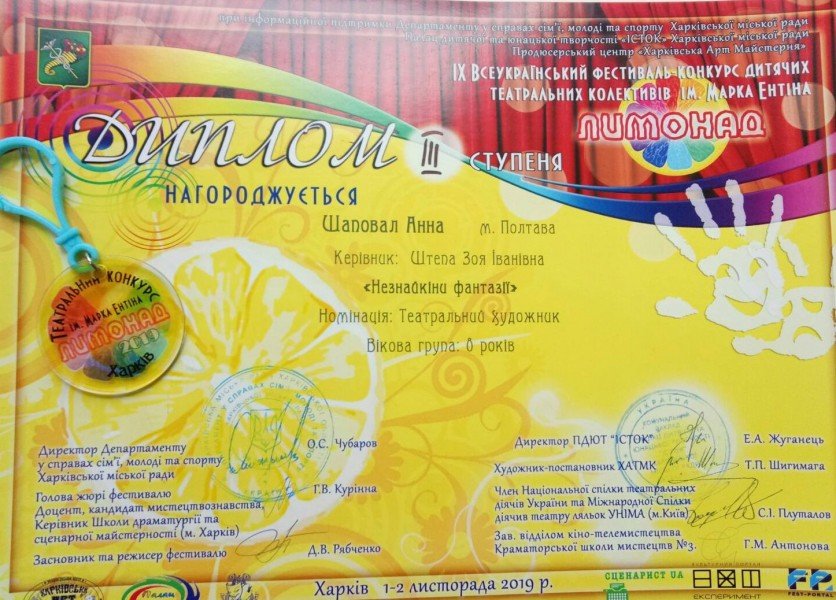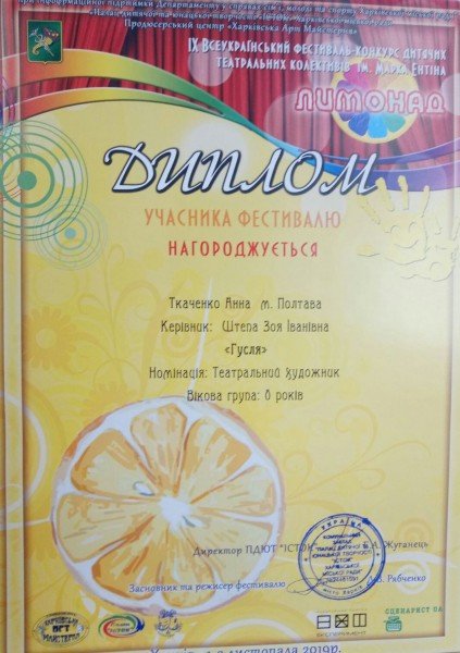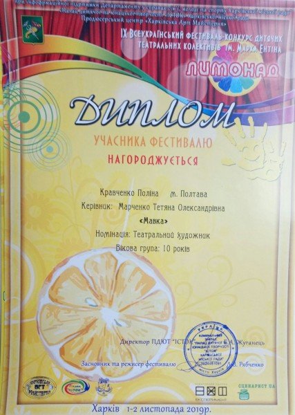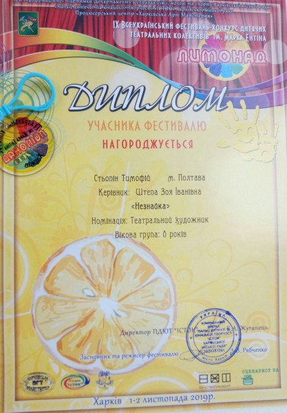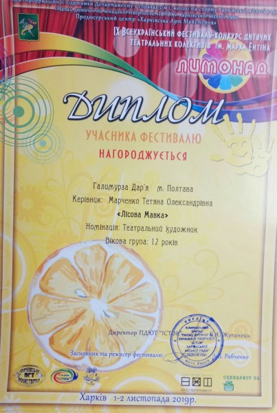 Всеукраїнський фестиваль-конкурс дитячих театральних колективів ім. Марка Ентіна "Лимонад"