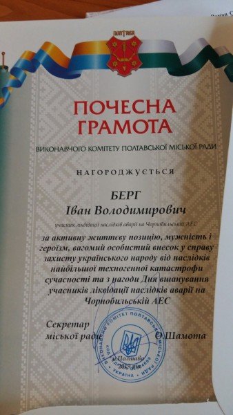 Приєднуючись до слів привітання хочеться побажати всім учасникам ліквідації наслідків аварії на Чорнобильській атомній електростанції міцності духу, здоров’я, добробуту, злагоди у родинах та мирного неба над нашою рідною Україною.