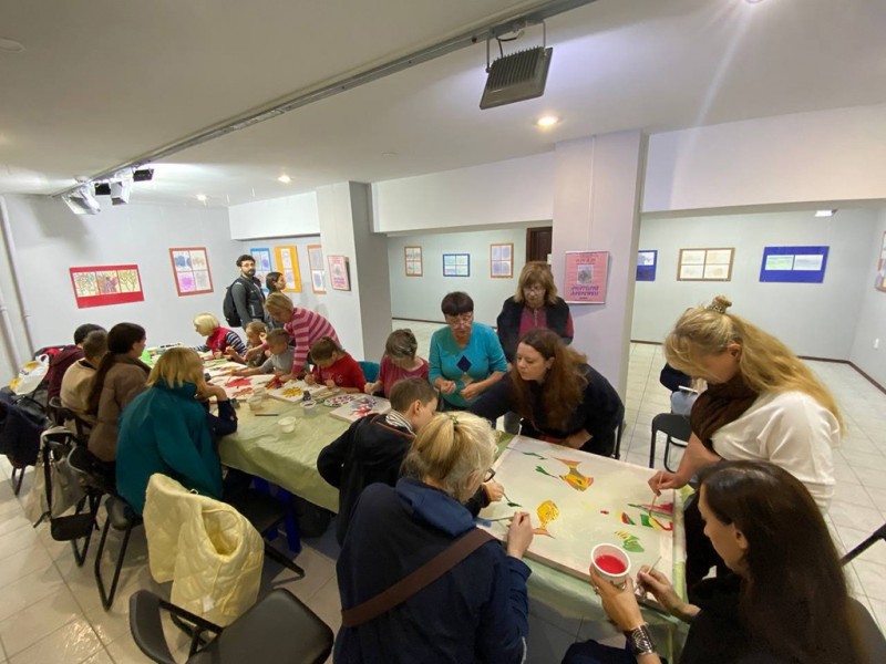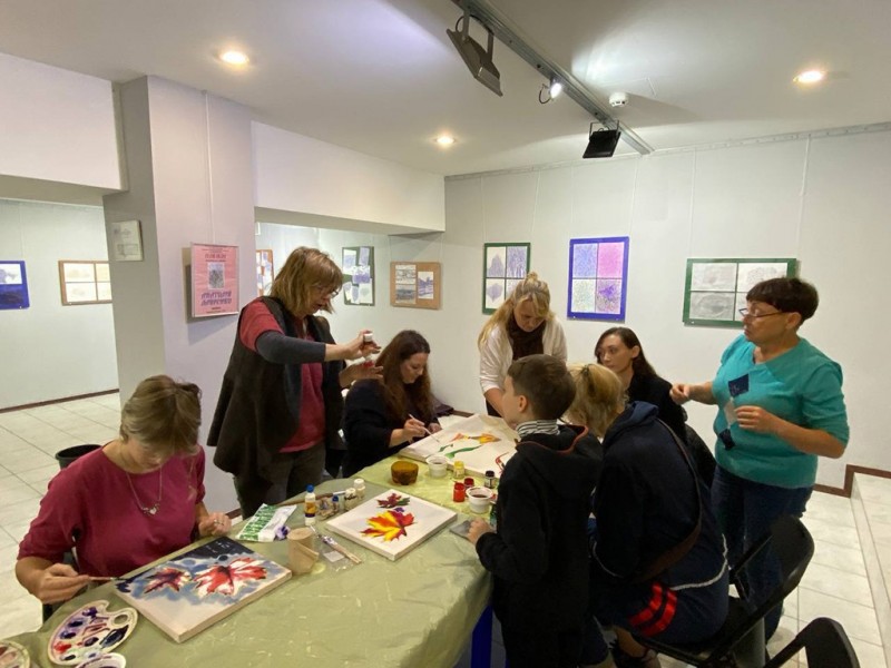 Як завжди Полтавська міська школа мистецтв «Мала академія мистецтв» ім. Р. Кириченко на чолі з викладачем Волковою Оленою Анатоліївною провели черговий майстер-клас з батику в приміщенні Полтавського художнього музею (галерея мистецтв) імені Миколи Ярошенка для родин вимушених переселенців, де панувала своя душевна атмосфера, яка заряджає позитивом та налаштовує на оптимістичний лад.